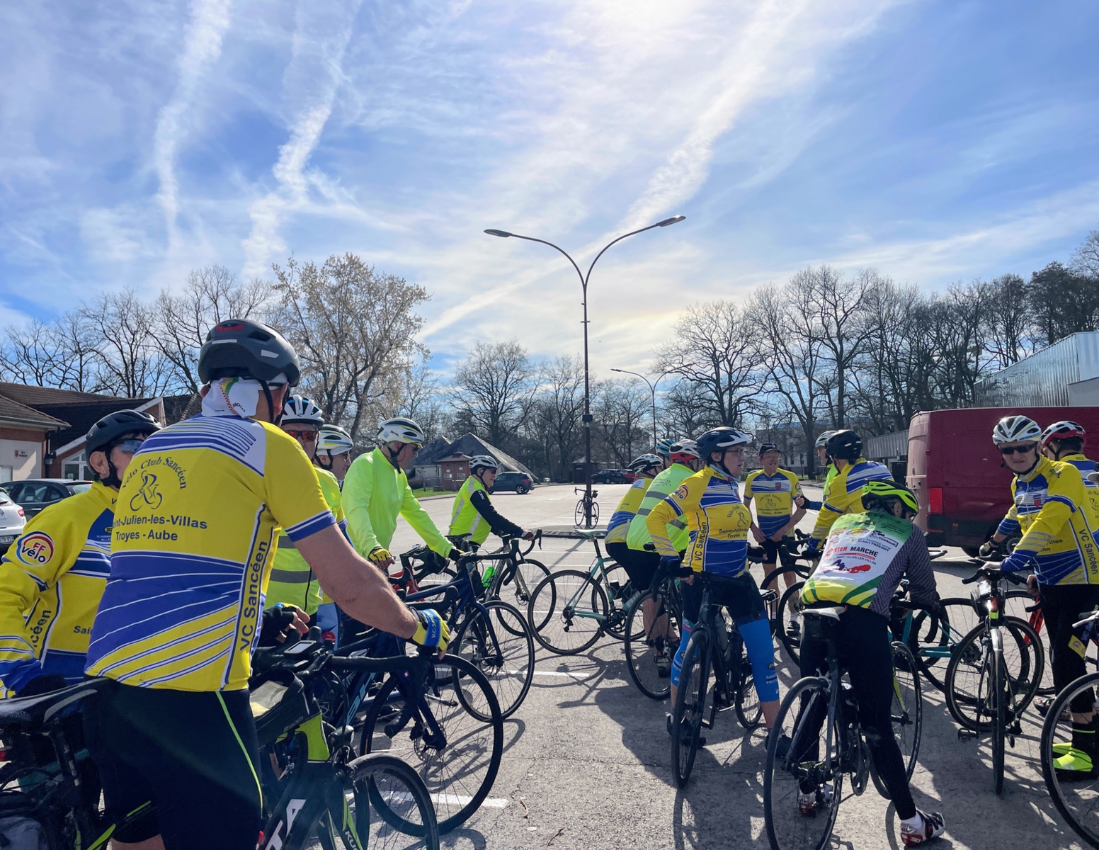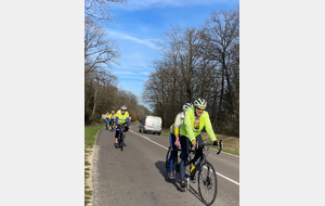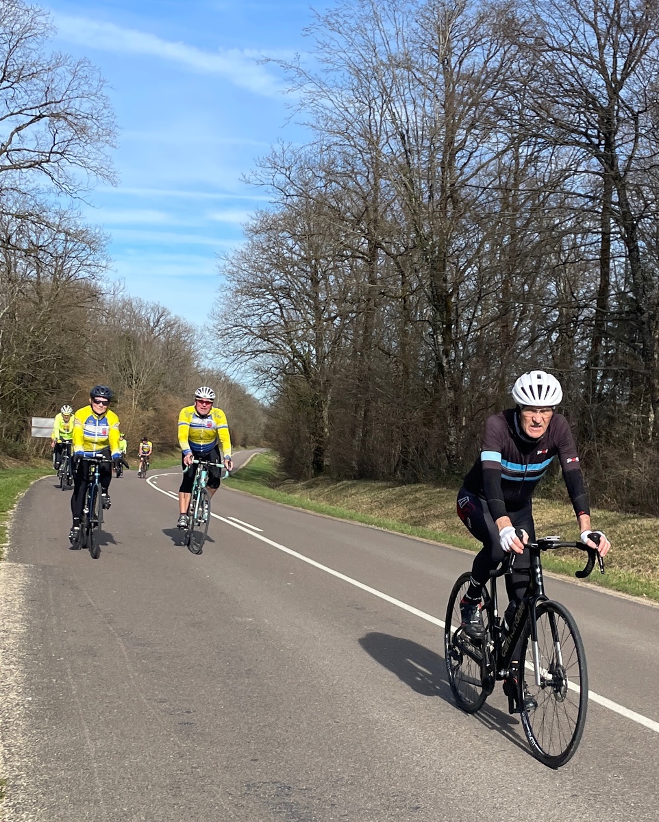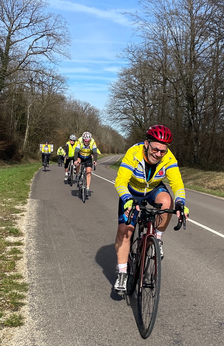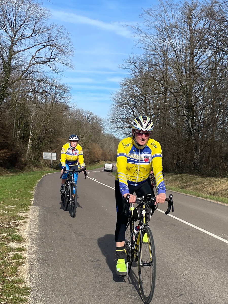 Mercredi 25 février, le circuit de l'Aube à Vélo N°22 au programme. 21 présents au départ de Saint-Julien-les-Villas dont 19 VCS (5 féminines : Catherine, Brigitte, Betty, Pascale et Marie-Line. Un temps extra pour rouler avec cette superbe journée de printemps en février avec de la douceur, vraiment agréable de voir notre ami : le soleil !!. Une première crevaison juste avant la côte de Bouilly ce qui a permis à quelques cyclos de monter la côte à leur rythme. Une deuxième crevaison dans le village de Chamoy. Un deuxième petit groupe de 4 sociétaires (2 féminines : Françoise et Nadège) avec le départ de Saint-Léger pour faire le même circuit. Espérons cette météo pour samedi après-midi. Ps : nous demandons aux cyclos qui veulent faire plus de 18/20 ou 20/22 de moyenne de ne pas venir avec les groupes du mercredi ou alors se mettre en fin de peloton ou de constituer un autre groupe. Pour rouler plus vite vous avez les groupes du jeudi avec moyenne : 24/26 ou 22/24. Merci de votre compréhension.