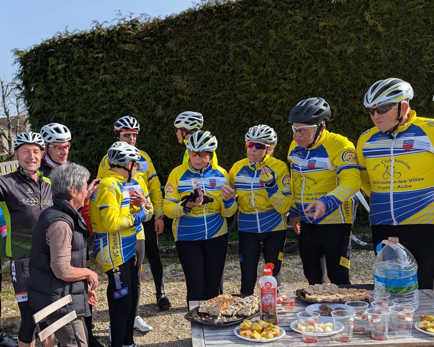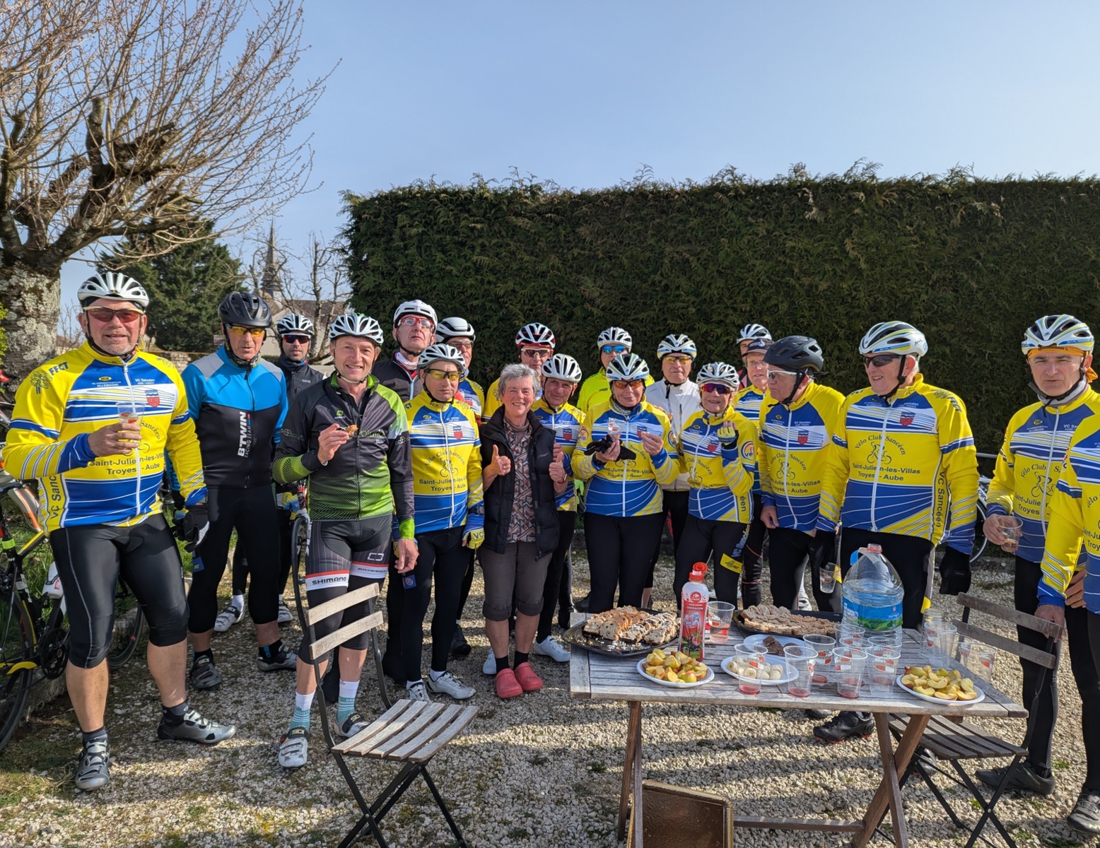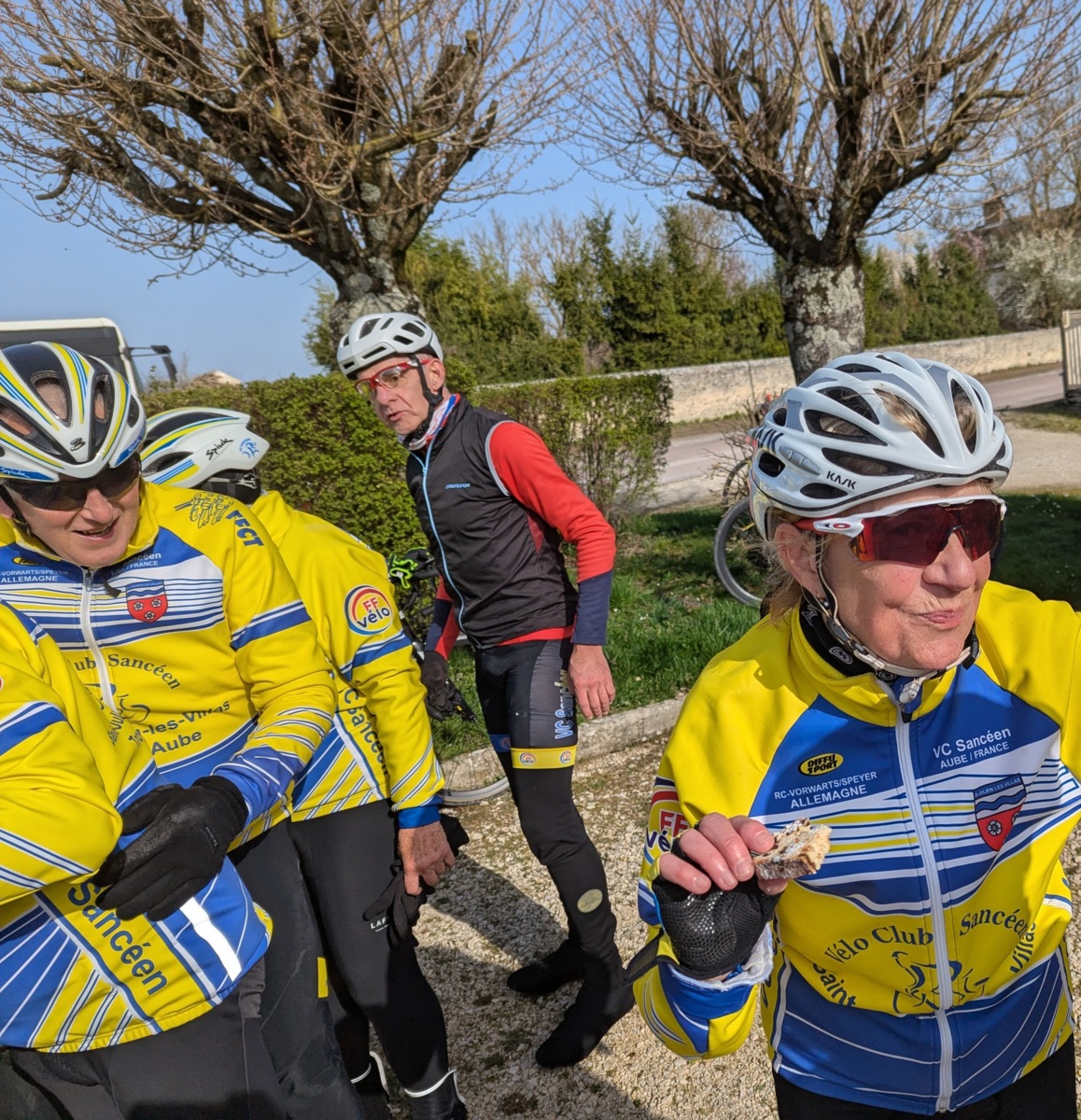 Dimanche 8 mars en matinée, rattrapage du 55km des Balades Sancéennes. Départ à 9h avec une petite fraîcheur mais au fil des minutes retour d’une température plus douce. Superbe sortie avec une vingtaine de présents dont 18 VCS (2 féminines : Marie-France et Annie). 13 qui étaient dans l’organisation hier ont pris un engagement pour faire ce rattrapage. Un arrêt super sympa à Vaudes où une collation mise sur pied par Pascale Lehallier attendait les participants (es), merci beaucoup. Comme hier retour par la Vallée de la Seine avec une allure super agréable avant l’arrivée vers la salle André Grimont où hier les cyclotes et cyclos étaient réunis pour la première organisation du VCS 2026. Ce jour, en arrivant pas de collation, il ne peut pas en avoir toute la matinée !!