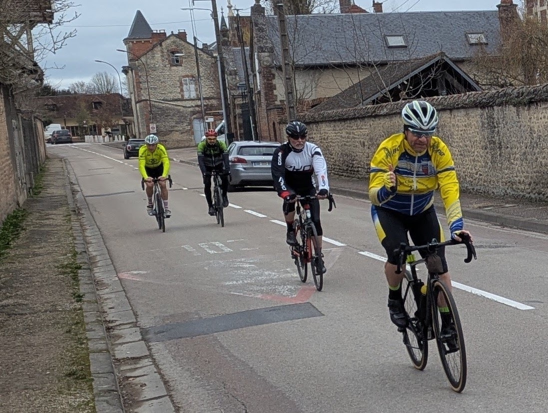 Mardi 24 février, sur le parcours numéro 21, des passionnés de bicyclette ont réalisé une sortie de 66 km. Le temps était de la partie, mais moins ensoleillé que ce qu'avaient prévu les météorologistes de "Météo France". Le groupe était formé de 31 cyclos, dont 11 VCS, plus comme à chaque sortie, des membres bienfaiteurs et amis du VCS. Parcours sans grandes difficultés effectué à allure soutenue, ponctué de plusieurs points de rassemblement. En résumé, une belle sortie vélo par un temps presque printanier !!!