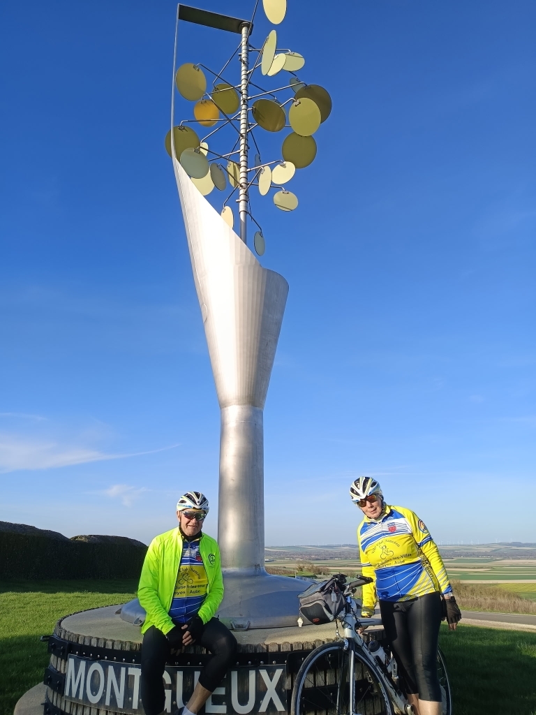 Après le rattrapage du 75km Emile Marchal dimanche après-midi, Marie-France et Christian ont réussi mardi 17 mars, avec un super temps, le parcours N°1 de 58km de Troy'Métropole Tour du club de Barberey. Merci à Jean-Louis Maugard de passage en haut de l'escargot de Montgueux pour la photo. Profitons de faire du vélo en ce moment avec une météo très encourageante.