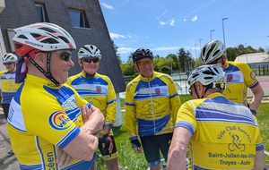 Samedi 18 avril, place au premier 100km du calendrier du CODEP 10. Le CCTS invitait les cyclotes et cyclos à la journée forte du brevet Emile Marchal avec les départs vers le complexe Henri Terré à Troyes. Superbe journée avec une belle météo et sur un très beau parcours en direction de Jeugny, Chaource, Pargues, Arelles, Virey-sous-Bar, Chauffour-lès-Bailly et retour par Montreuil-sur-Barse, Renaut, Troyes. Au total 113 inscrits dont 8 féminines. Belle participation du VCS avec 31 présents dont 7 féminines : Pascale, Anne, Marie-France, Brigitte, Annie, Claudie et Elisabeth. Pour les deux groupes petits arrêts sympa en haut de la côte après Pargues et pour remplir les bidons à Jully-sur-Sarce. Un peu de vent comme à chaque fois mais très supportable. Un grand merci au CCTS pour la mise en place de cette journée forte et à tous nos sociétaires qui ont réalisé ce brevet dans une bonne ambiance comme on aime. Place maintenant au rattrapage pour ceux qui n’étaient pas au rendez-vous de ce jour.