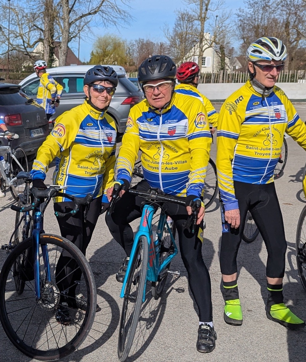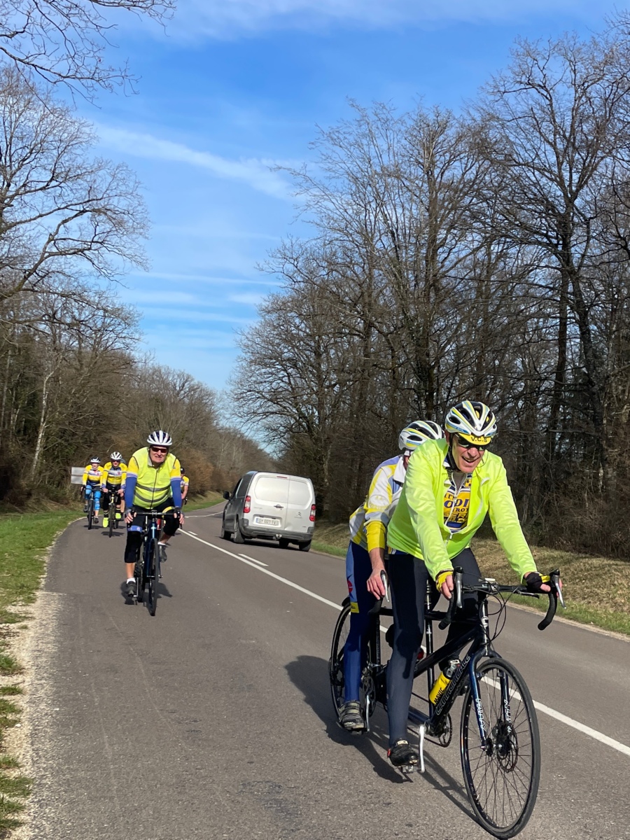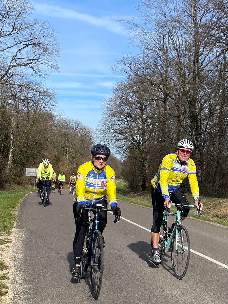 Mercredi 25 février, le circuit de l'Aube à Vélo N°22 au programme. 21 présents au départ de Saint-Julien-les-Villas dont 19 VCS (5 féminines : Catherine, Brigitte, Betty, Pascale et Marie-Line. Un temps extra pour rouler avec cette superbe journée de printemps en février avec de la douceur, vraiment agréable de voir notre ami : le soleil !!. Une première crevaison juste avant la côte de Bouilly ce qui a permis à quelques cyclos de monter la côte à leur rythme. Une deuxième crevaison dans le village de Chamoy. Un deuxième petit groupe de 4 sociétaires (2 féminines : Françoise et Nadège) avec le départ de Saint-Léger pour faire le même circuit. Espérons cette météo pour samedi après-midi. Ps : nous demandons aux cyclos qui veulent faire plus de 18/20 ou 20/22 de moyenne de ne pas venir avec les groupes du mercredi ou alors se mettre en fin de peloton ou de constituer un autre groupe. Pour rouler plus vite vous avez les groupes du jeudi avec moyenne : 24/26 ou 22/24. Merci de votre compréhension.