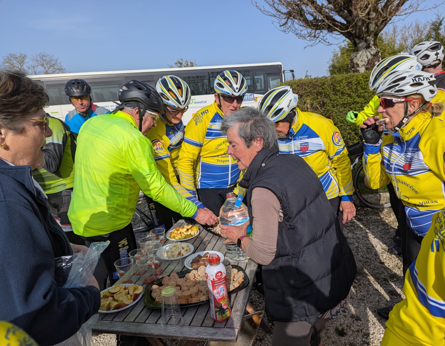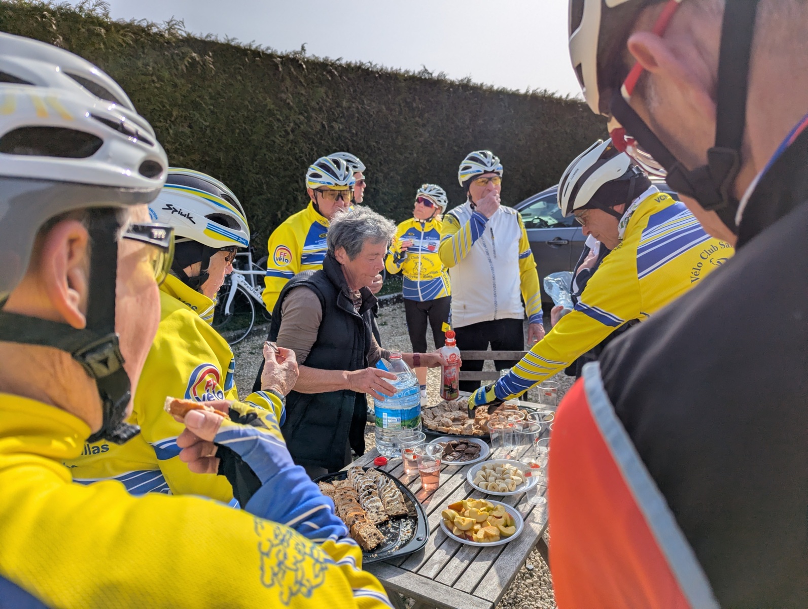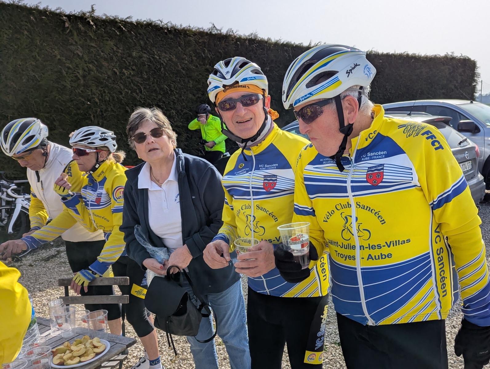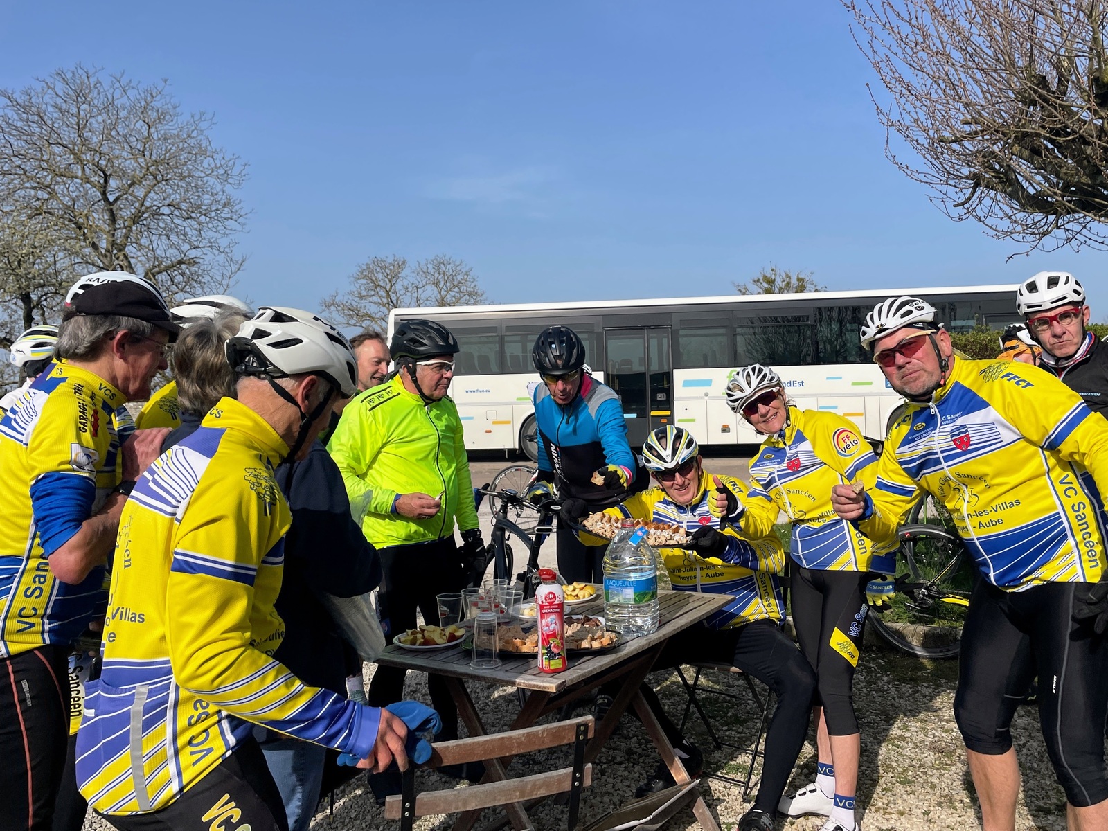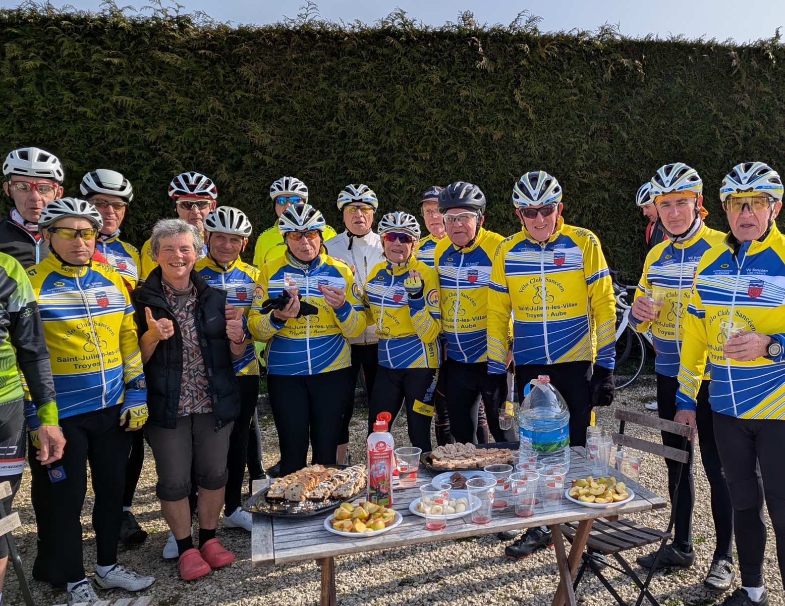 Dimanche 8 mars en matinée, rattrapage du 55km des Balades Sancéennes. Départ à 9h avec une petite fraîcheur mais au fil des minutes retour d’une température plus douce. Superbe sortie avec une vingtaine de présents dont 18 VCS (2 féminines : Marie-France et Annie). 13 qui étaient dans l’organisation hier ont pris un engagement pour faire ce rattrapage. Un arrêt super sympa à Vaudes où une collation mise sur pied par Pascale Lehallier attendait les participants (es), merci beaucoup. Comme hier retour par la Vallée de la Seine avec une allure super agréable avant l’arrivée vers la salle André Grimont où hier les cyclotes et cyclos étaient réunis pour la première organisation du VCS 2026. Ce jour, en arrivant pas de collation, il ne peut pas en avoir toute la matinée !!