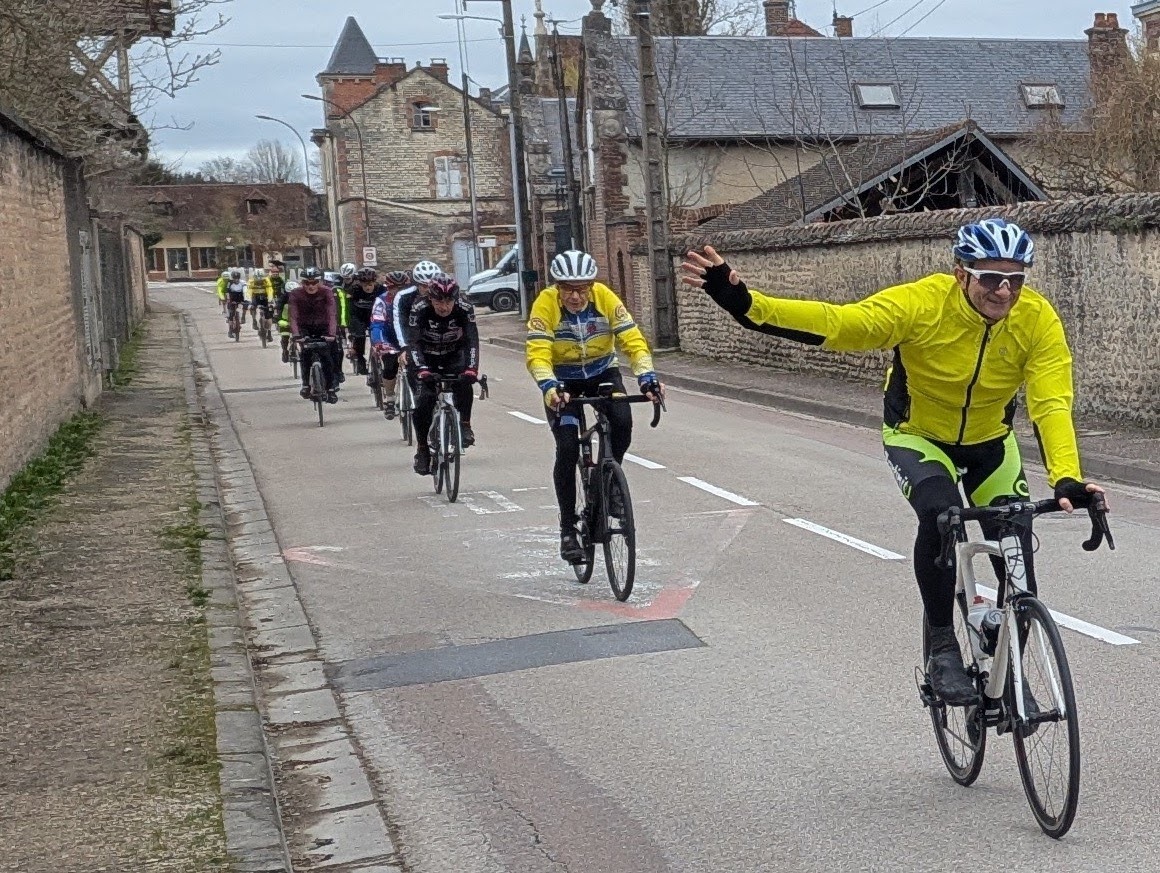 Mardi 24 février, sur le parcours numéro 21, des passionnés de bicyclette ont réalisé une sortie de 66 km. Le temps était de la partie, mais moins ensoleillé que ce qu'avaient prévu les météorologistes de "Météo France". Le groupe était formé de 31 cyclos, dont 11 VCS, plus comme à chaque sortie, des membres bienfaiteurs et amis du VCS. Parcours sans grandes difficultés effectué à allure soutenue, ponctué de plusieurs points de rassemblement. En résumé, une belle sortie vélo par un temps presque printanier !!!